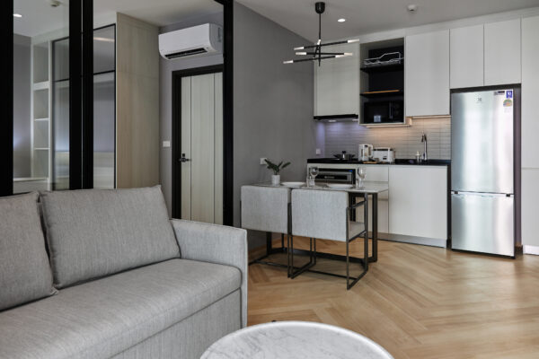 Квартира была прекрасна. На кухне было все, что нам было нужно, кровать была удобной, ванная комната и место для хранения одежды были идеальными, а балкон был красивым! Кондиционер работал идеально, и было комфортно и уютно. Смарт-телевизоры были хороши для вечернего времени, и Wi-Fi отлично работал для удаленной работы.