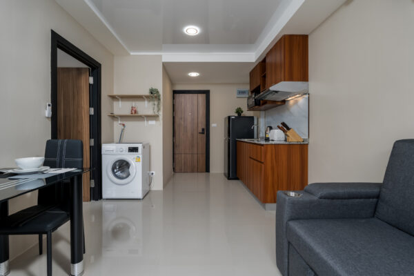 При заезде менеджер собирает депозит, который возвращается при выезде после проверки состояния жилья. Размер залога зависит от длительности и типа жилья: при проживании до двух месяцев нужно внести 10 000 THB или 300 USD за студии и однокомнатные апартаменты и 20 000 THB или 600 USD за двух‑, трех‑ и четырехкомнатные квартиры; для сроков от 2 до 6 месяцев залог составляет от 30 000 THB (1000 USD) или от 60 000 THB (2000 USD) соответственно; для долгосрочного проживания и вилл сумма обсуждается индивидуально. Если гости приезжают ночью, менеджер согласует удобное время визита для получения залога. При выезде он также фотографирует счетчики и рассчитывает оплату коммунальных услуг, которую можно внести наличными батами.
