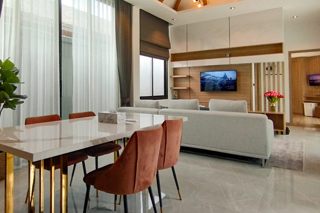- Просторные виллы с 2–4 спальнями, современным интерьером и всем необходимым для жизни: от посудомоечной машины до мягких лежаков у бассейна.