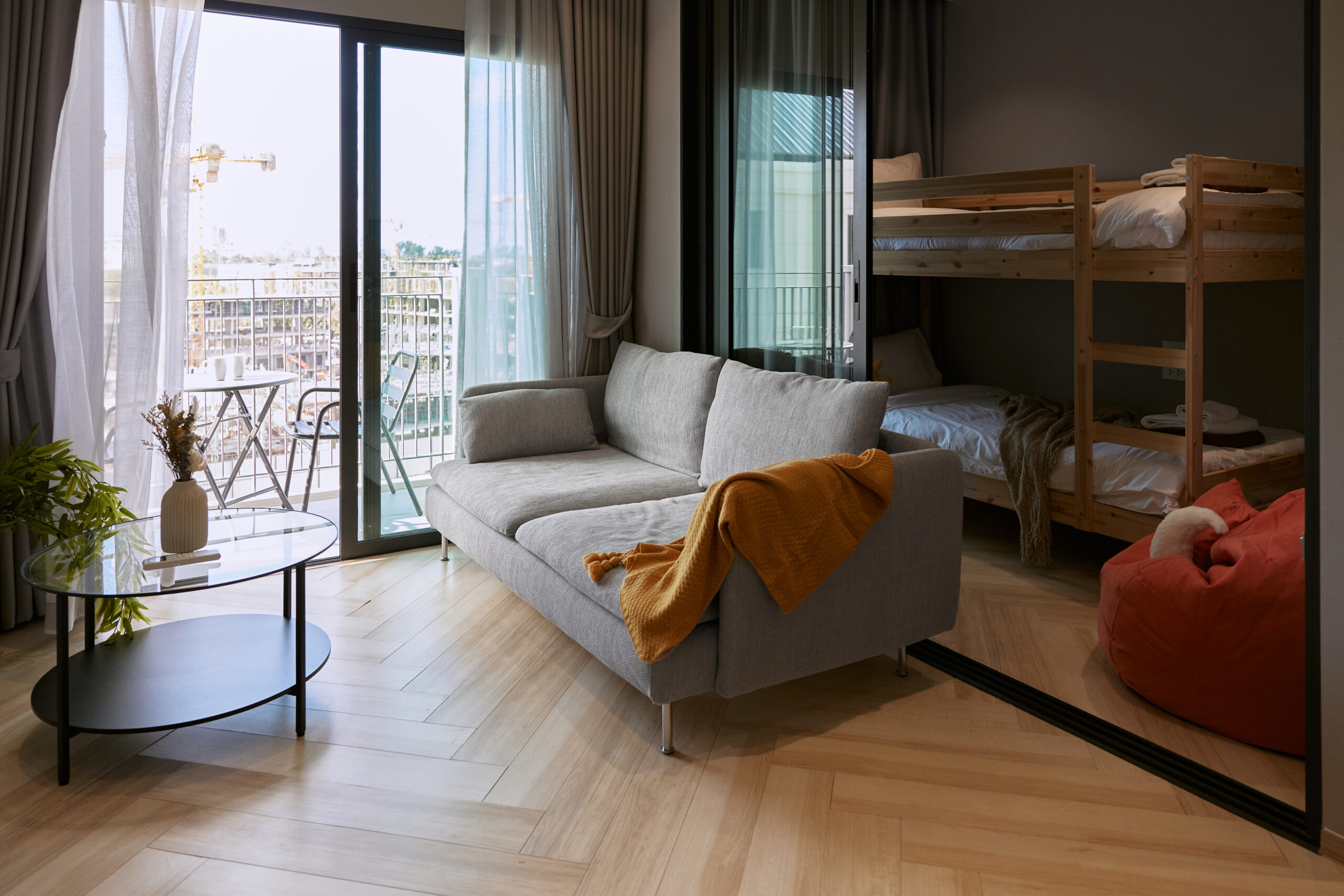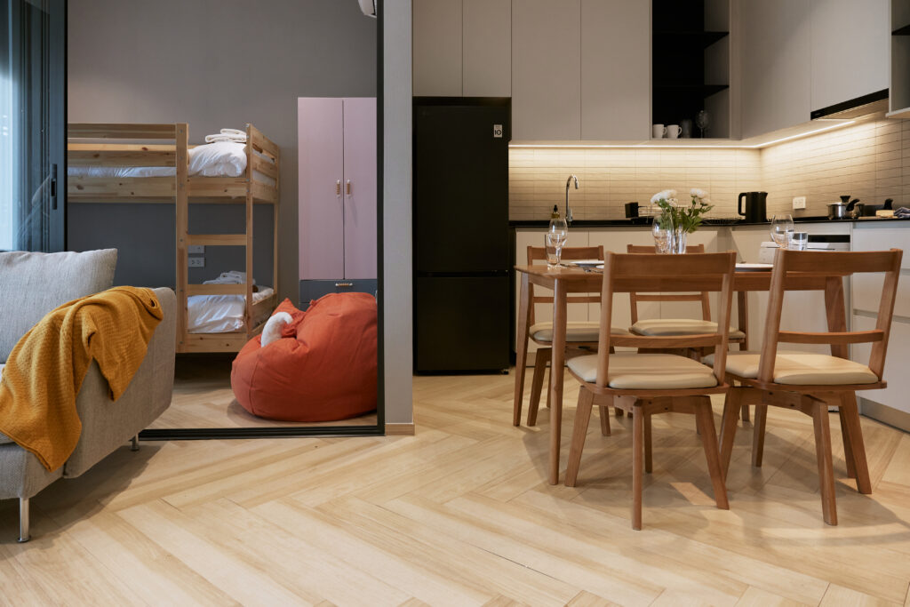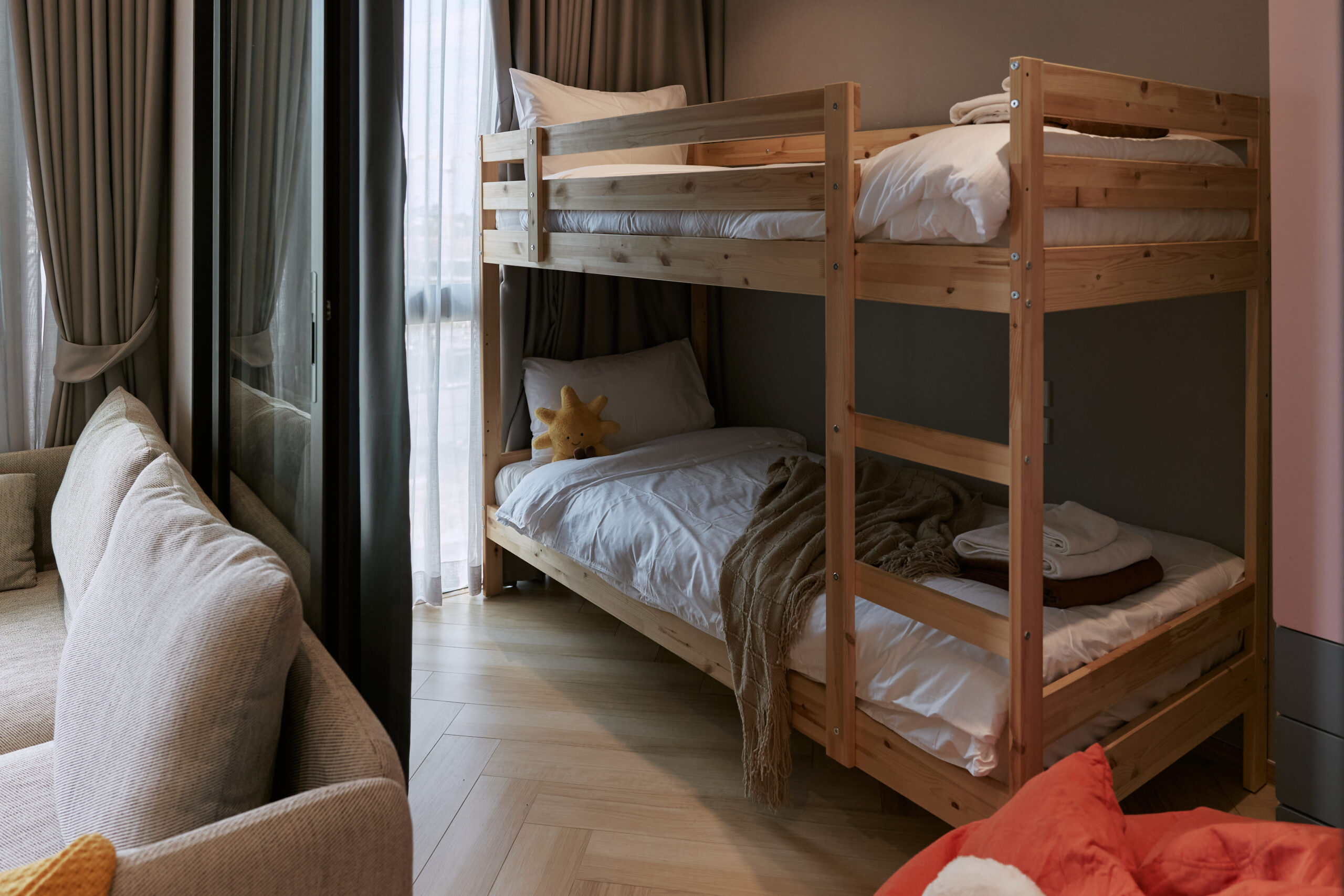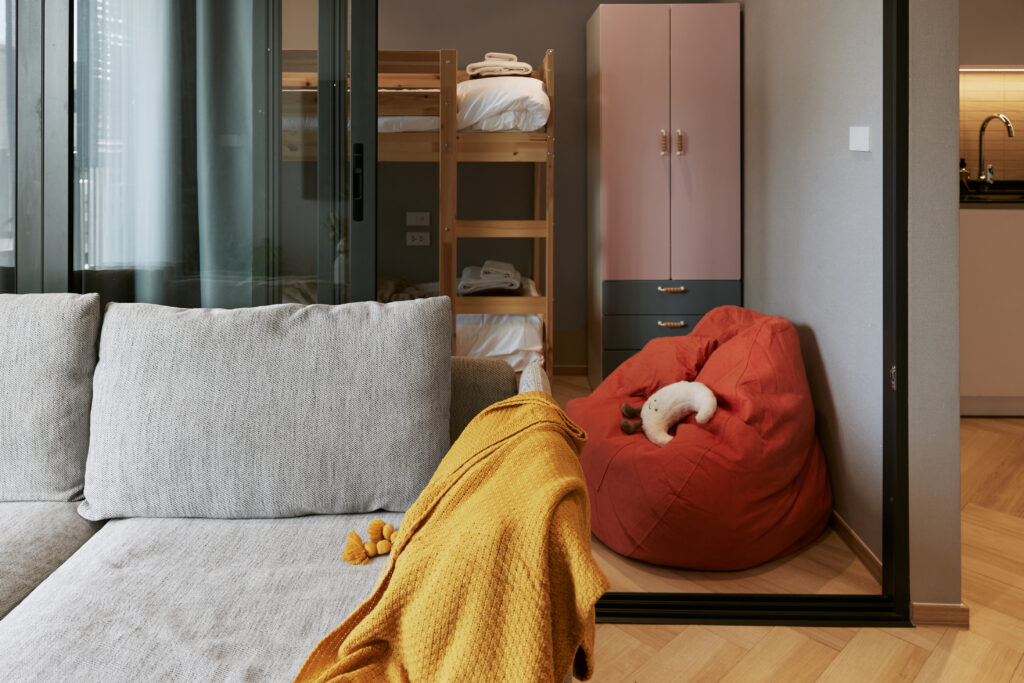 - Мастер спальня и детская комната с двухъярусной кроватью — ваши дети будут в восторге!