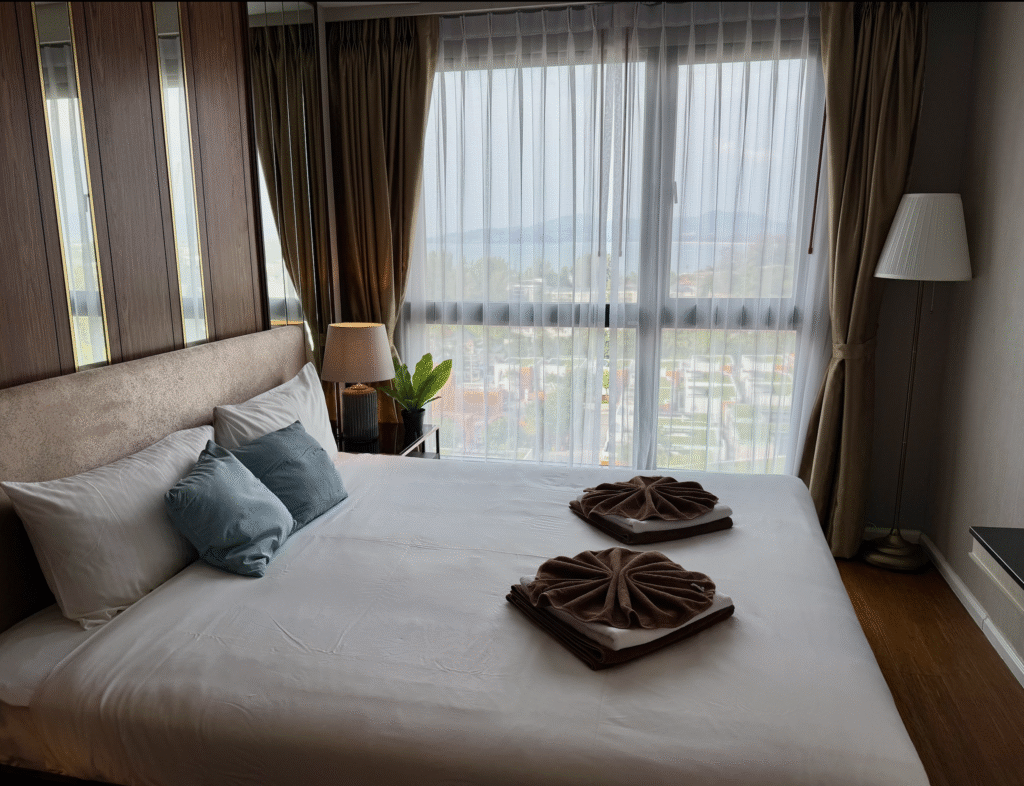Это просторные двуспальные апартаменты у Сурина для тех, кто ценит вид на море, пешую доступность пляжа и ощущение «своей квартиры» в тропиках — без лишних компромиссов и без лишней суеты. 🌴