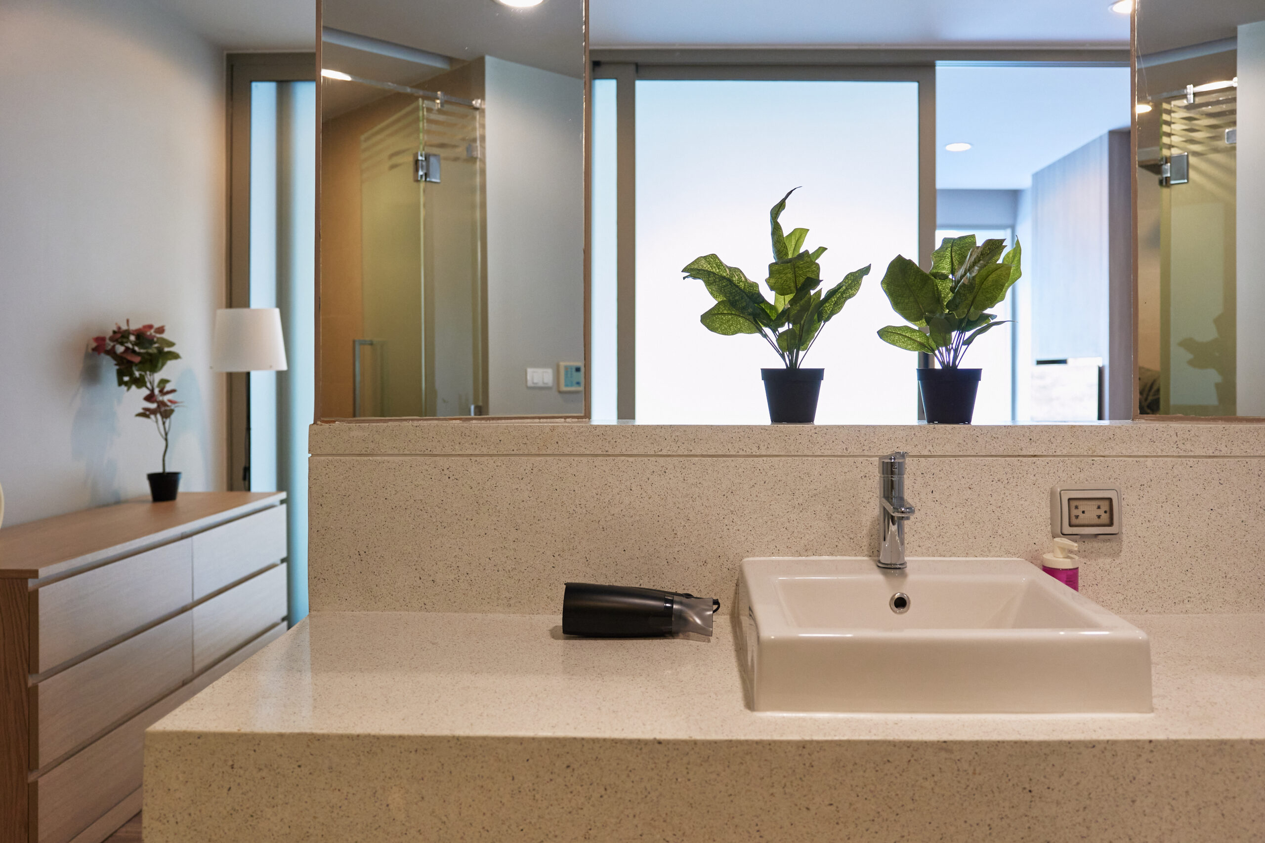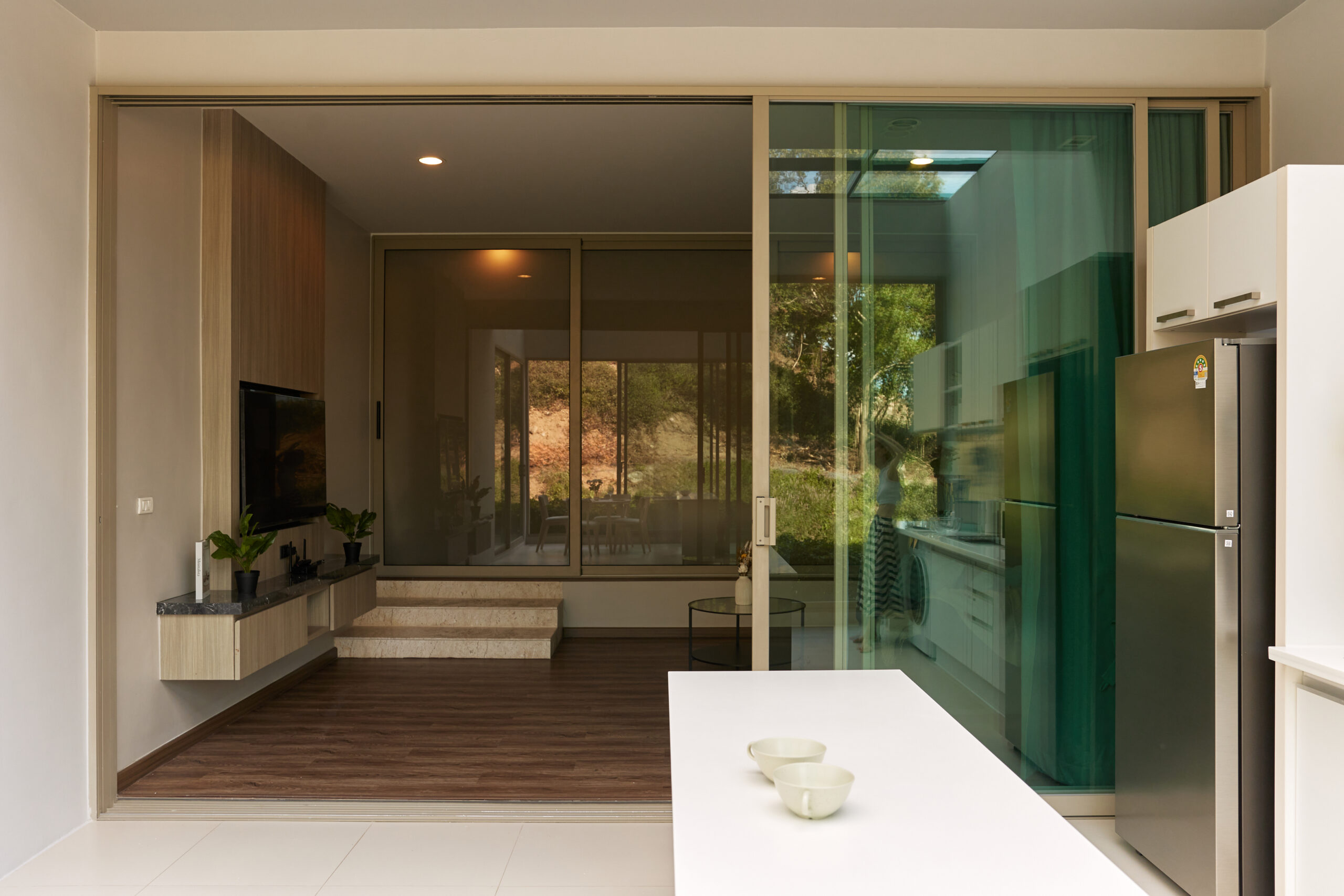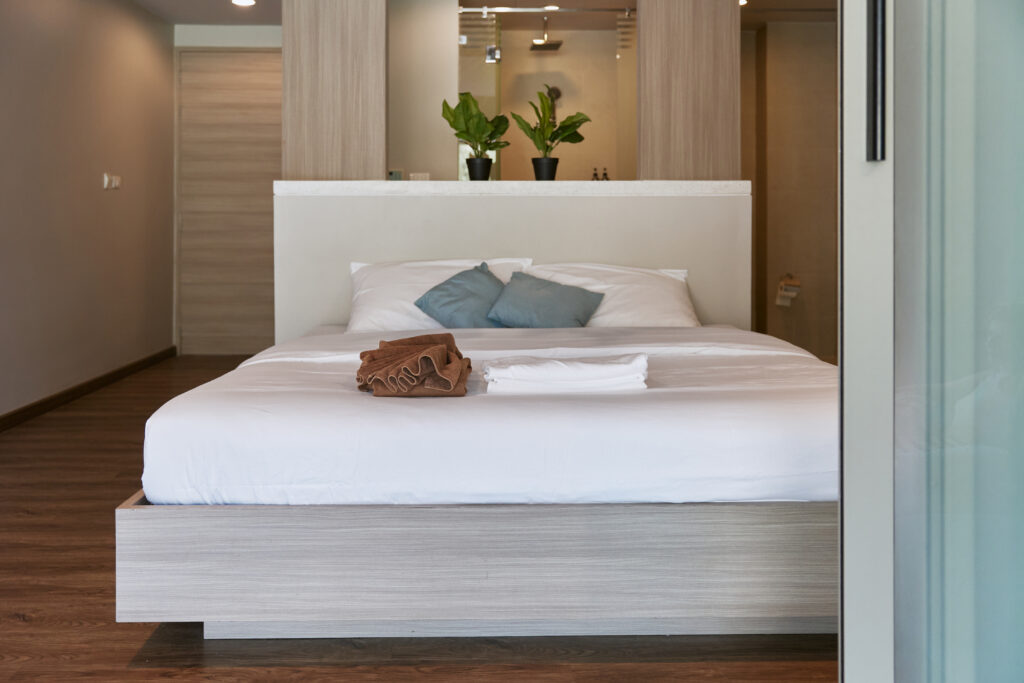 Да, площадь 75 м² делает апартаменты комфортными и для одного гостя, и для пары и для семьи. Простор, панорамные окна и стеклянная крыша, а также удобная планировка делают эти апартаменты отличным вариантом, если вы хотите снять студию на Пхукете недалеко от пляжа Карон.